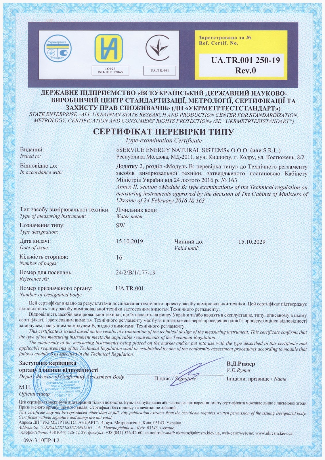 СЕРТИФІКАТ ПЕРЕВІРКИ ТИПУ: UA.TR.001 250-19